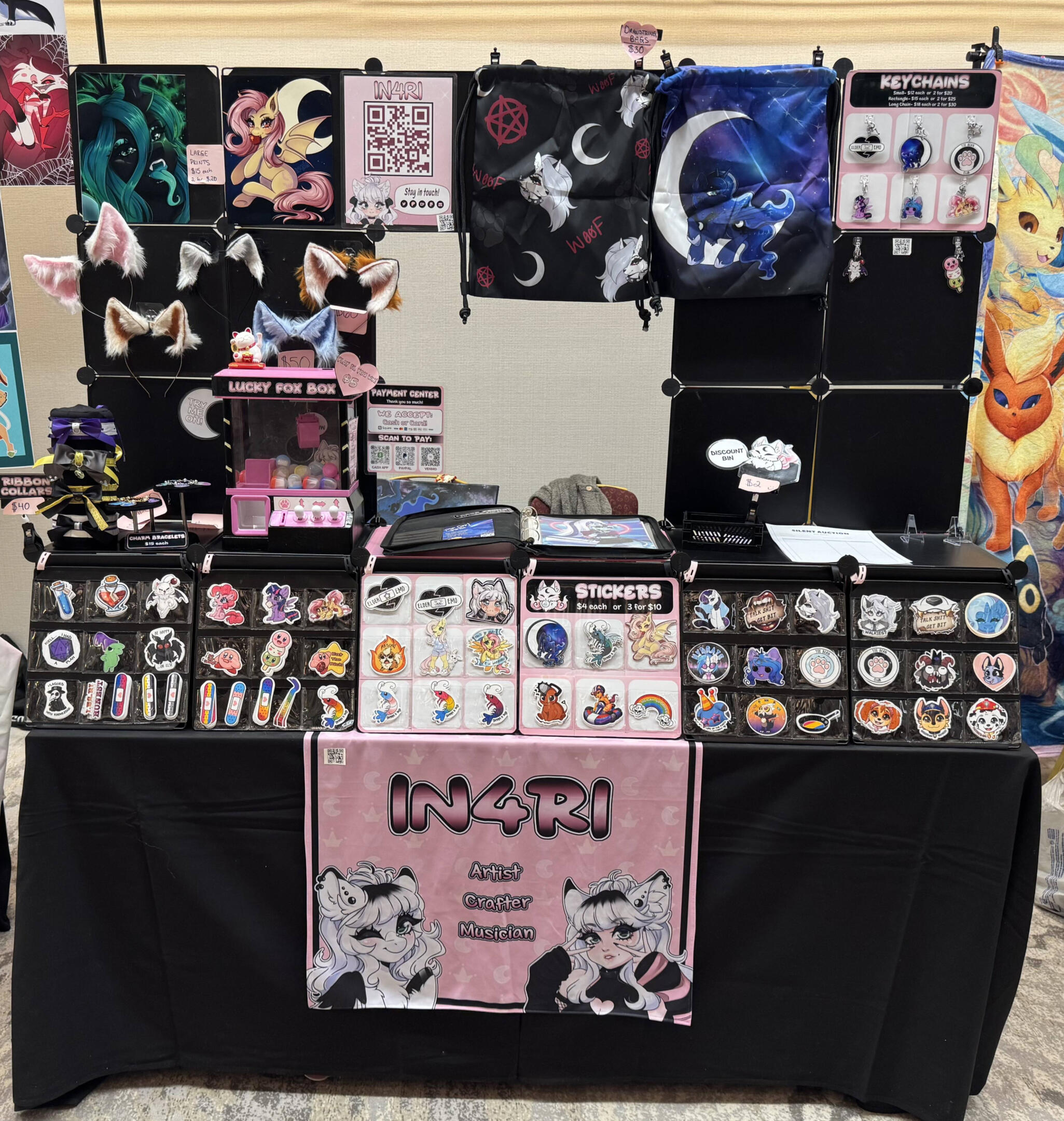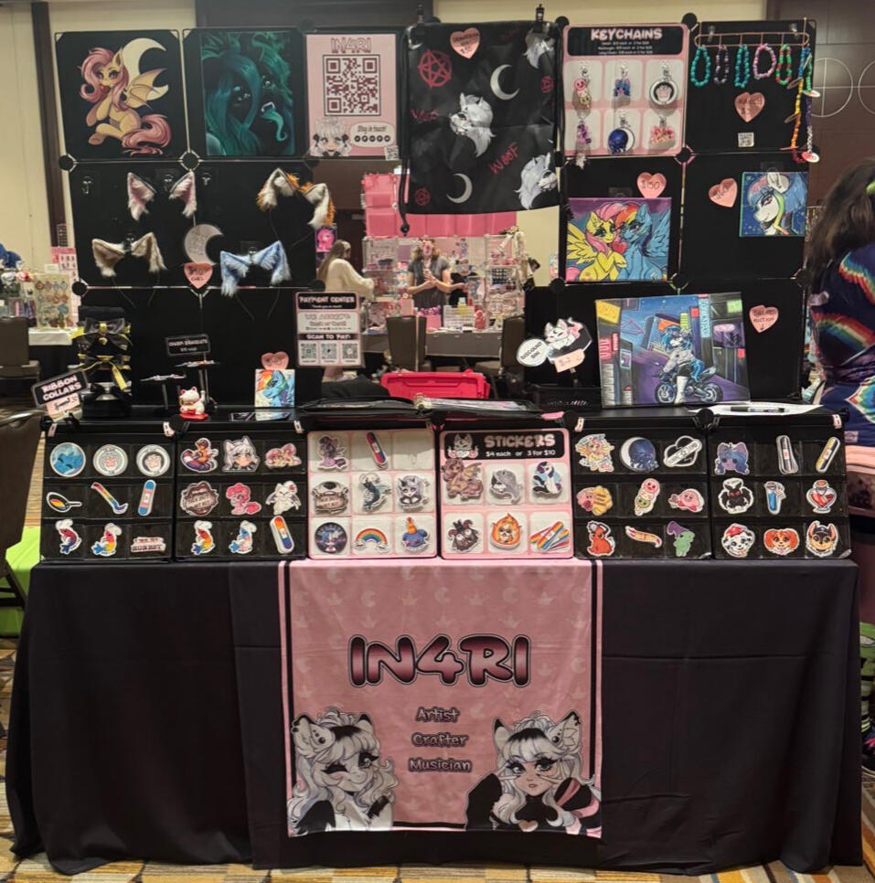 ♡ I've been an artist with online presence for years, starting in back in 2014, and I'm back to the scene with vigor! I make art and merch ranging from original designs to multiple fandom pieces. I sell ribbon collars, cosplay ears, charm bracelets, prints, stickers, painted canvases, keychains, drawstring bags, handfans, and other accessories! I also do at-con custom painted canvases.Please click on images to enlarge!